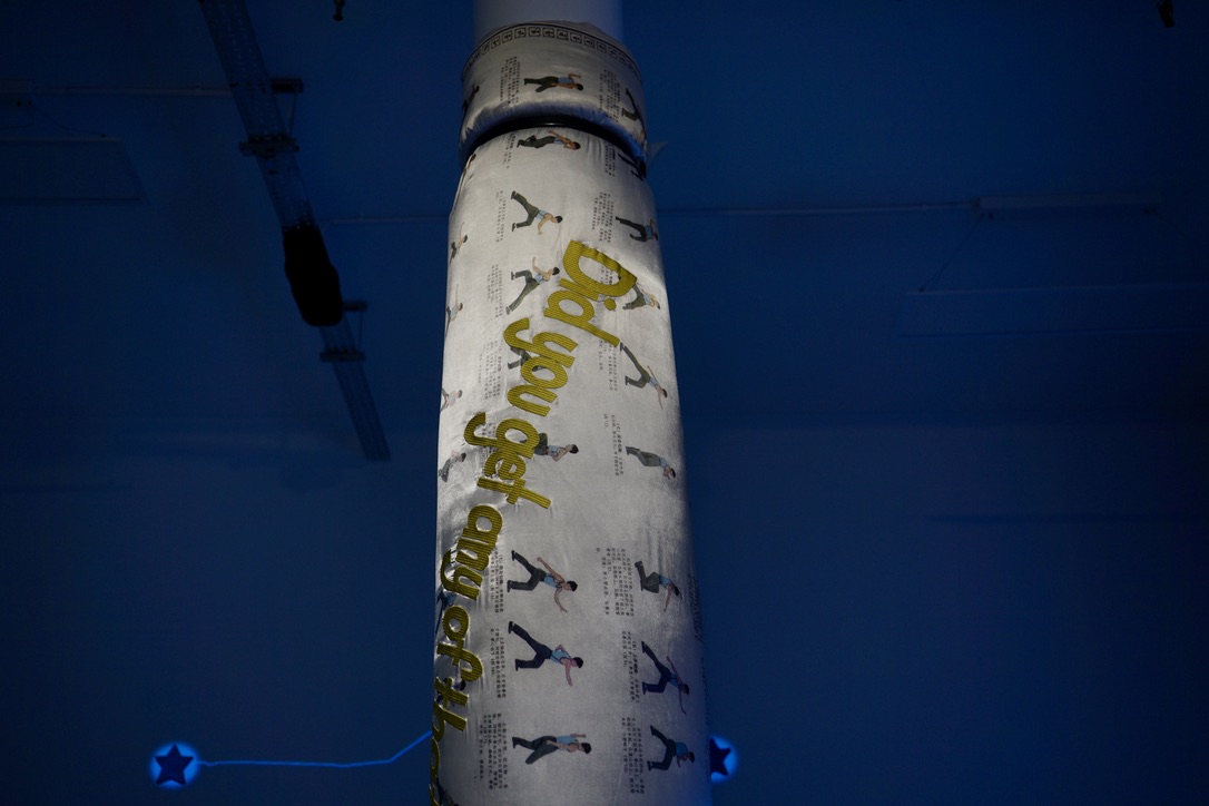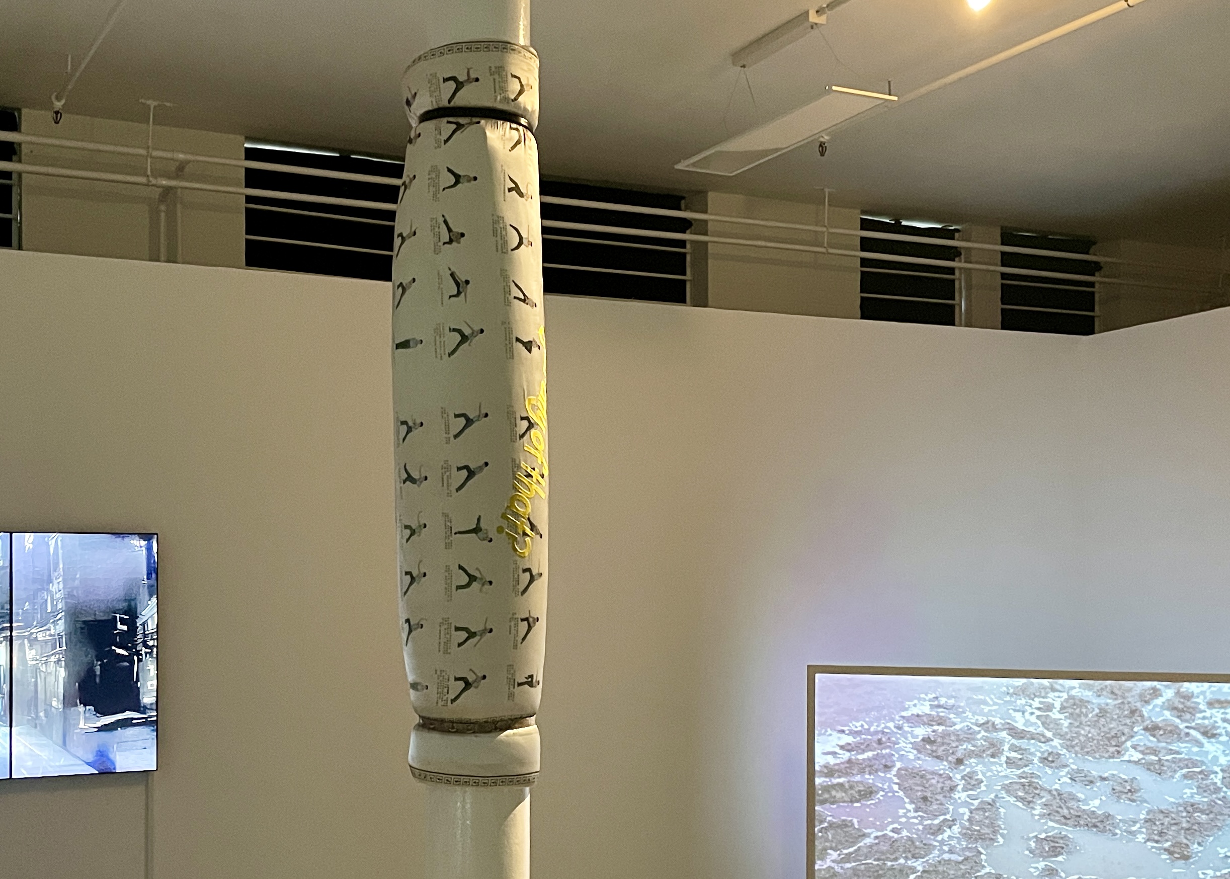 I wrapped a my duvet around a pillar in the middle of the south kiosk gallery and fixed it with two belts on two ends.